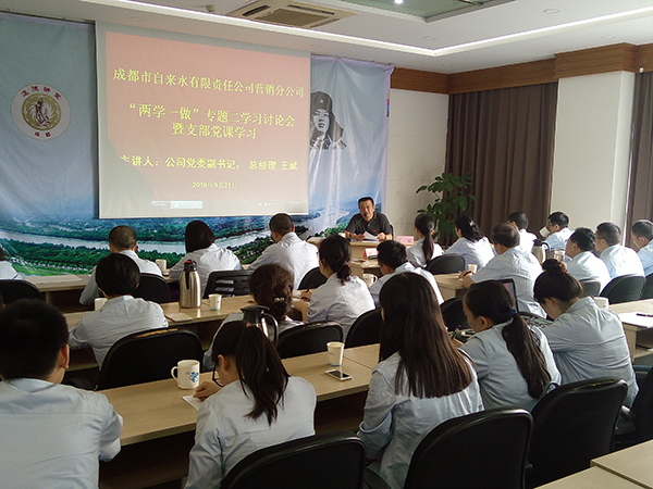9月21日下午,公司党委副书记、总经理王斌为营销分公司党员同志讲了一堂生动的党课。党课结合“两学一做”专题二的学习内容展开,包括分公司全体中层管理人员在内的50余名党员同志参加。