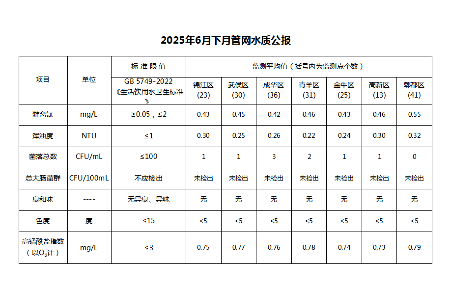 当前位置:首页>各类公告>水质公告>管网水常规七项半月检数据