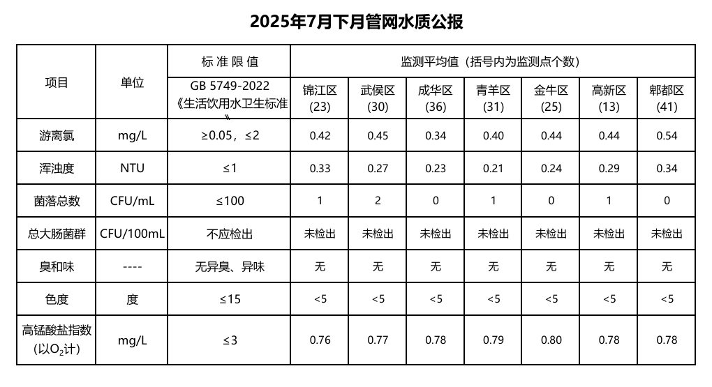 当前位置:首页>各类公告>水质公告>管网水常规七项半月检数据